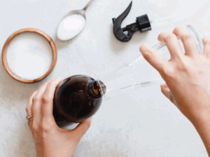 Using a bucket or spray bottle to hold and apply the cleaning solution can make the cleaning process more efficient and manageable.