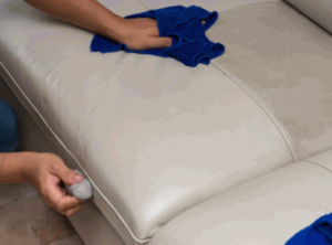 After the cleaning process, apply a leather conditioner to the couch to restore the leather surface, keeping it supple and preventing future damage.