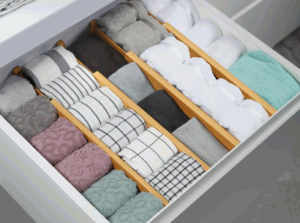 - Then, categorize your items and assign specific sections within the drawer for each category, such as socks, underwear, and accessories.