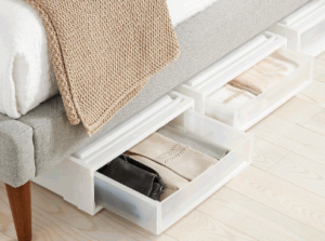 - Measure the height clearance under your bed to select the appropriate storage containers.