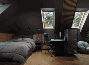 Natural light makes a significant impact on the overall feel of the room, and painting a loft conversion in calming shades like grey or brown can harmonize well with the available light.