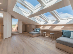 A Velux Loft Conversion is characterized by the installation of roof windows that allow for ample natural light to flood the space, making it an ideal choice for those who appreciate minimalist bedroom designs and open, airy environments.