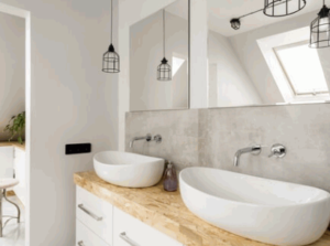 Using the right type of plaster enhances the aesthetics of a bathroom, offering opportunities to introduce color, texture, and finishes that complement the design elements like sinks and accent walls.